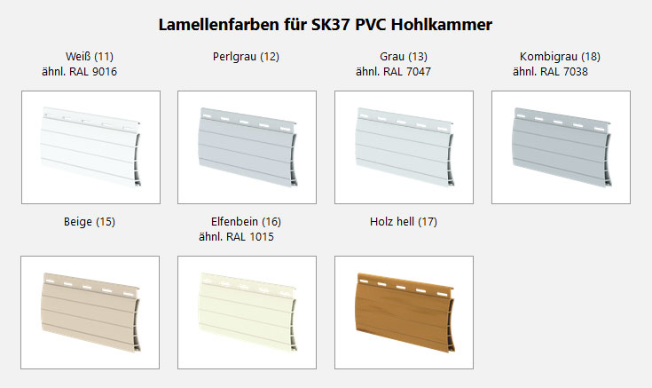 In diesem Schritt wählen Sie Ihren Lamellentyp für den Solarrollladen. Sie haben die Auswahl zwischen verschiedenen PVC- und Aluminium-Profilen. Bitte beachten Sie hierbei die nebenstehenden Informationen.